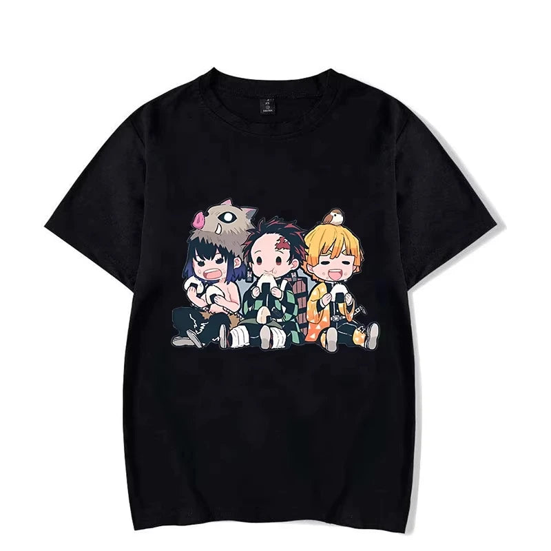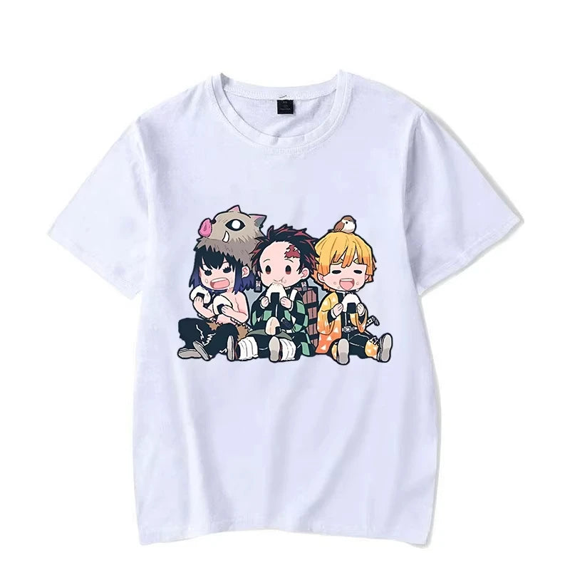 Anime Fun T-shirt Hashibira Inosuke Kamado Tanjirou Agatsuma Zenitsu with Cartoon Printed Men's and Women T-shirts Short Sleeves