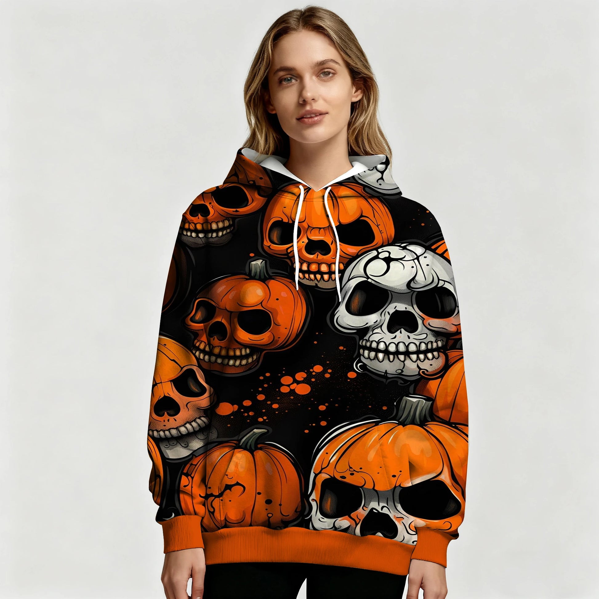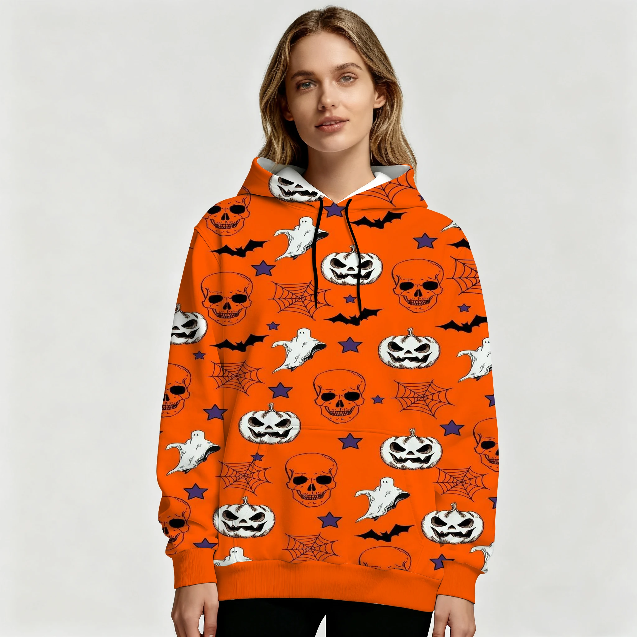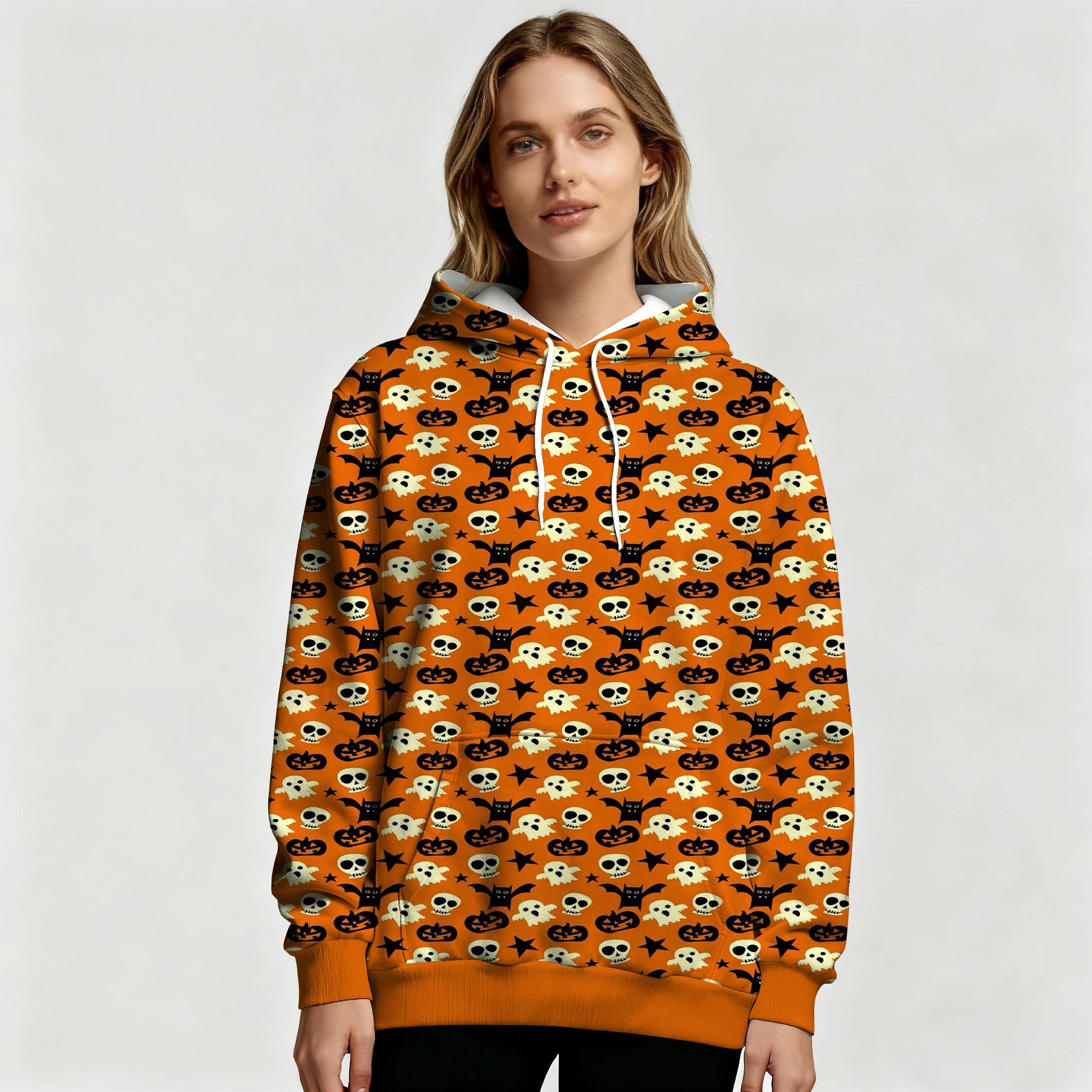 Halloween Hoodie with Pumpkin Ghost Skull & Bat