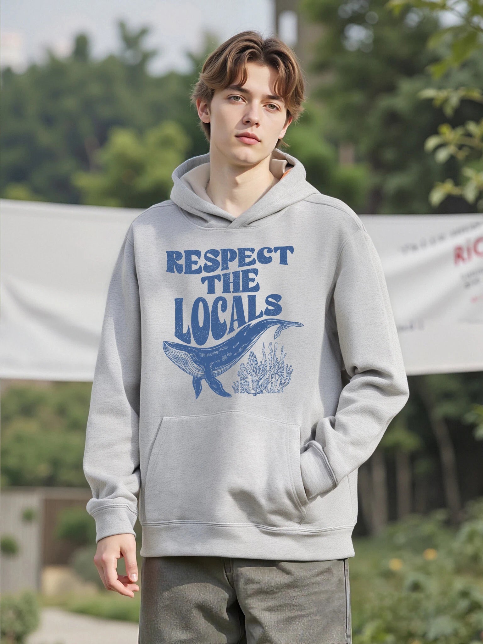 Respect The Locals Shark Printed Mens New Retro Hoodies Comfortable Loose Sweatshirts Pocket Soft Clothes Fleece Casual Hoodie