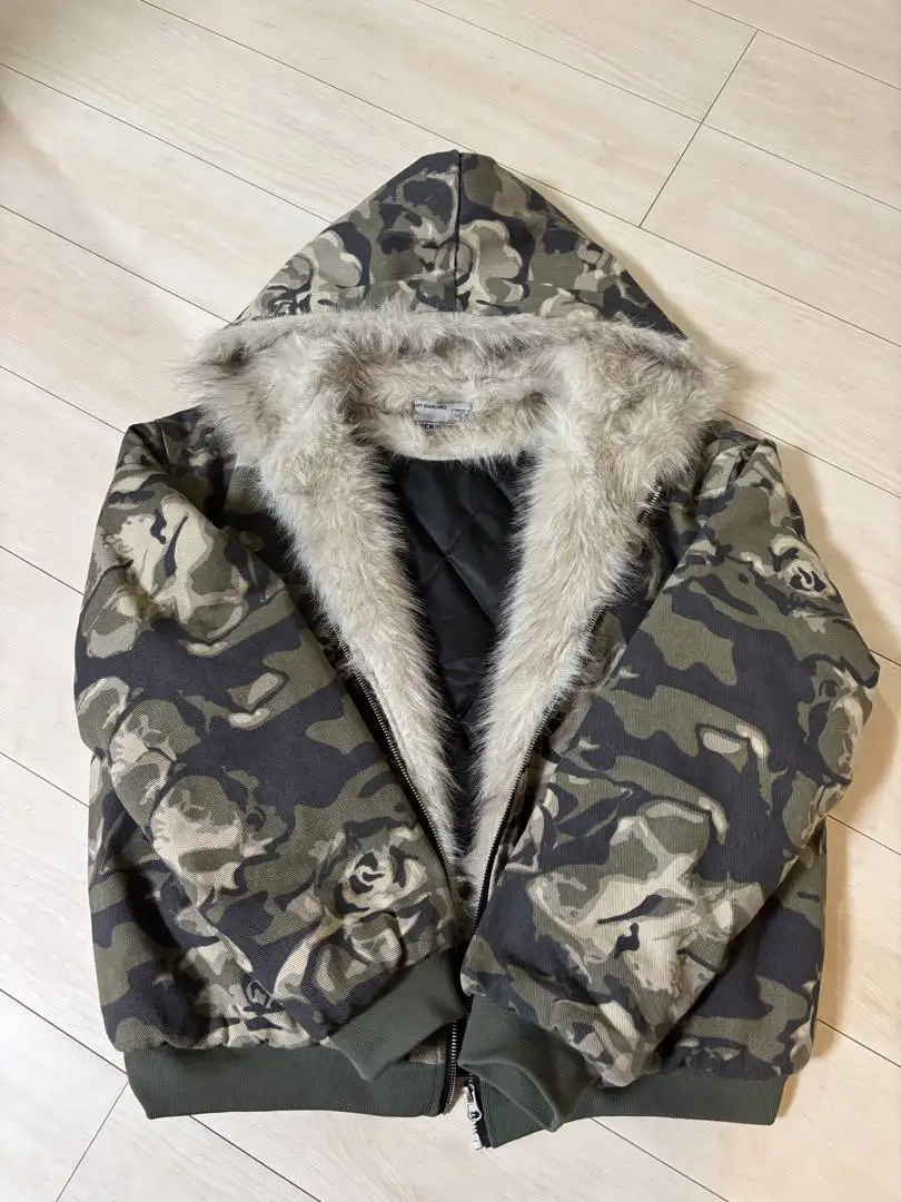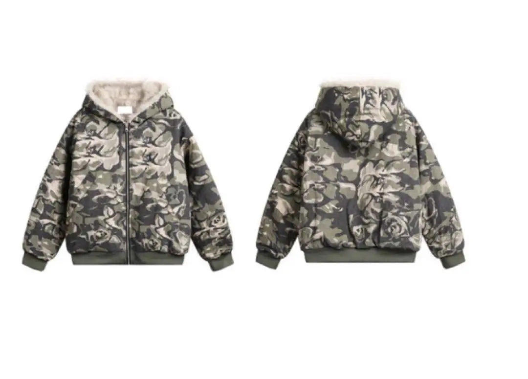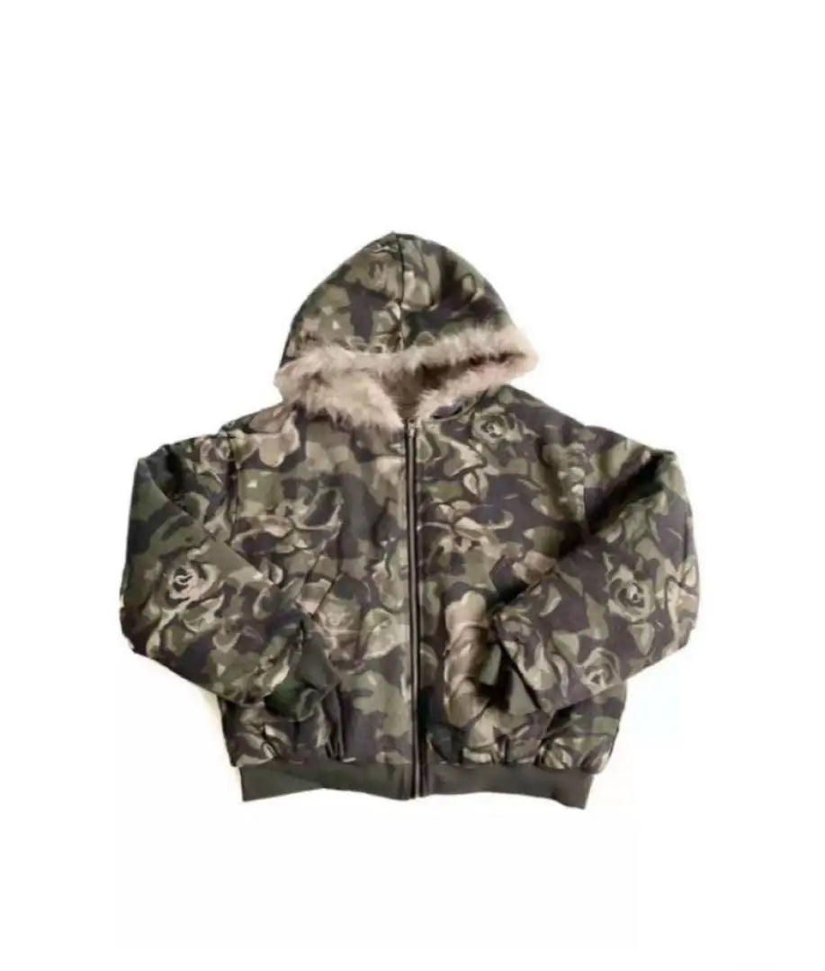 Camouflage fur zip up hoodie