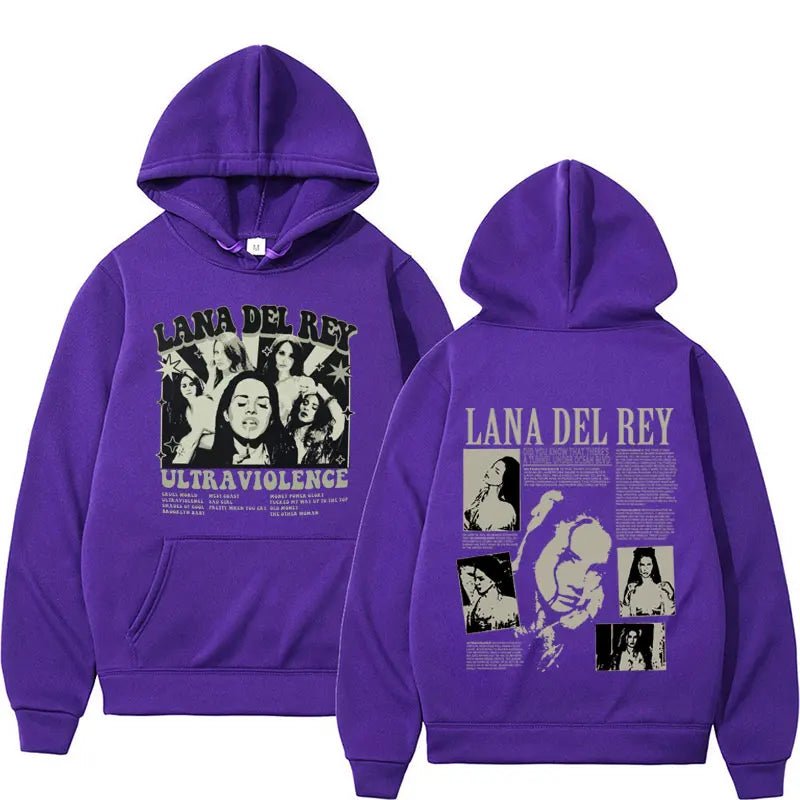 Singer Lana Del Rey Hoodies Ultraviolence Music Album Hooded Men Women's Clothes Fashion Vintage Oversized Sweatshirt Streetwear